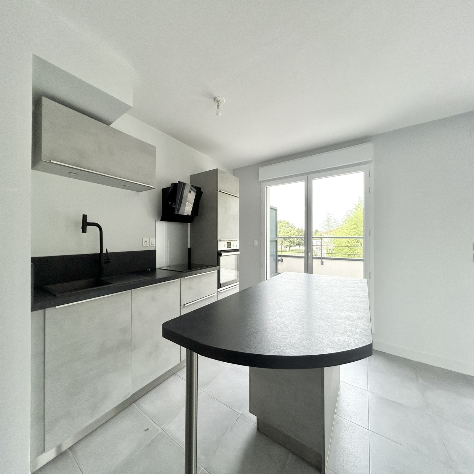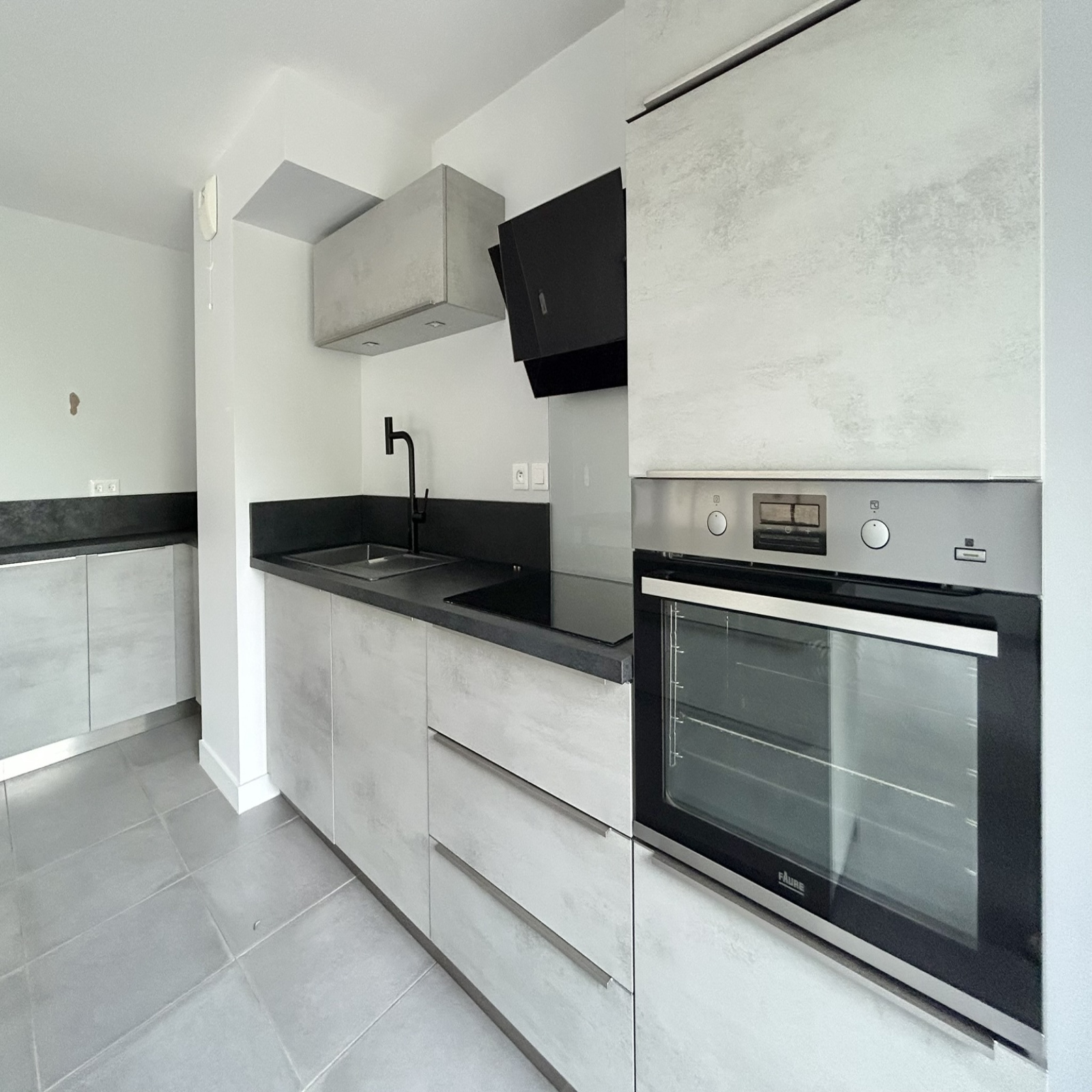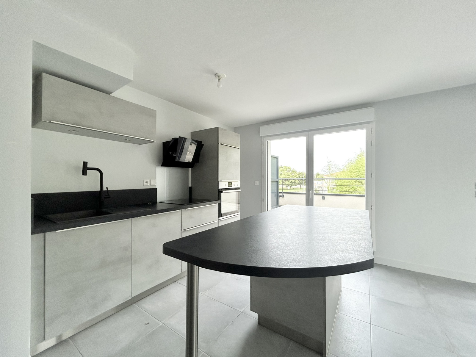 - le vaste séjour avec une cuisne équipée ( meubles hauts et bas, four, lave vaisselle, plaque de cuisson, hotte)