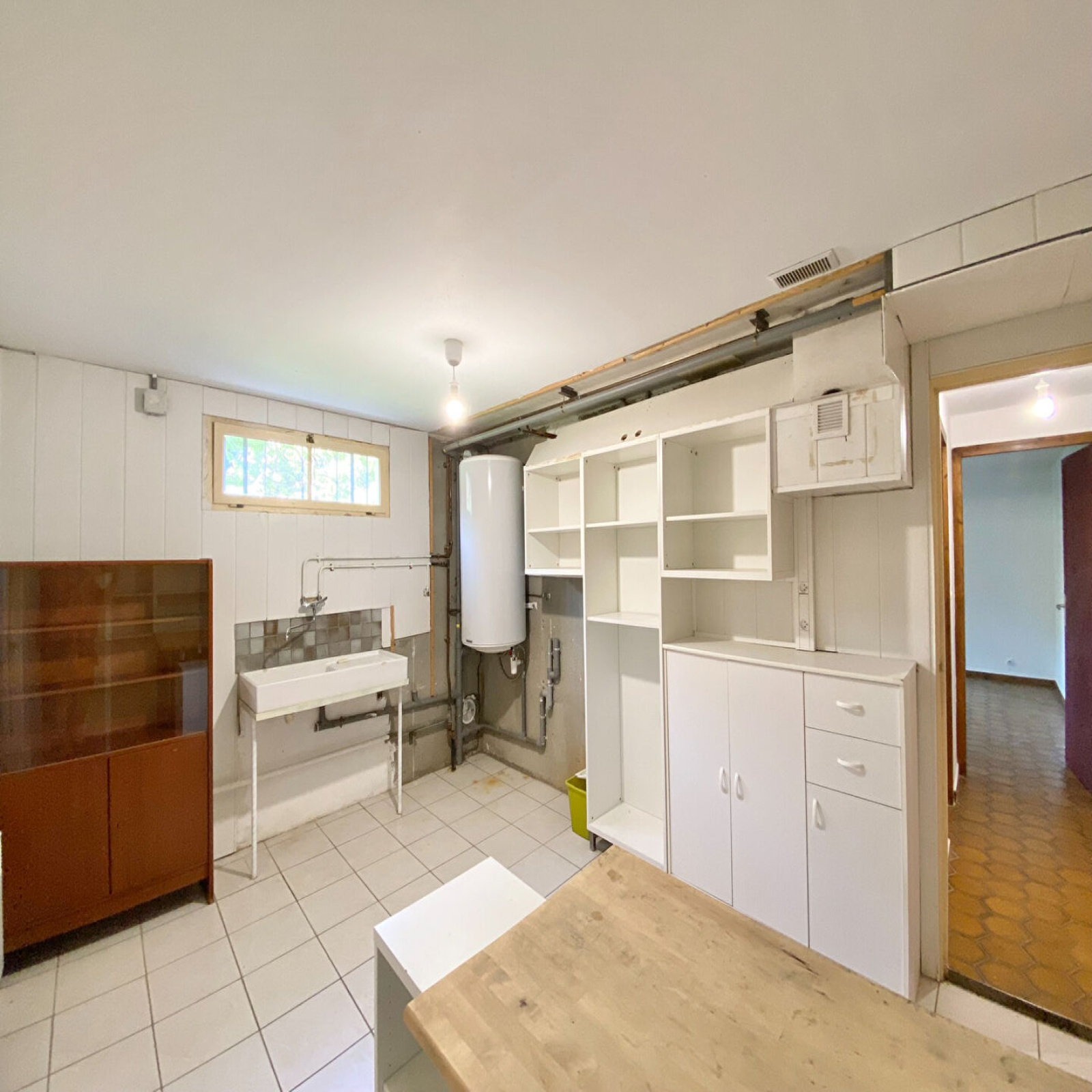 - la buanderie de 14 m² + garage de 20 m² + cave