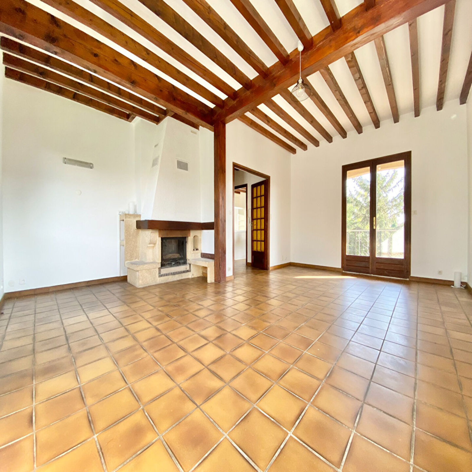 - le séjour triple exposition de 32 m² avec cheminée ouvrant sur une terrasse