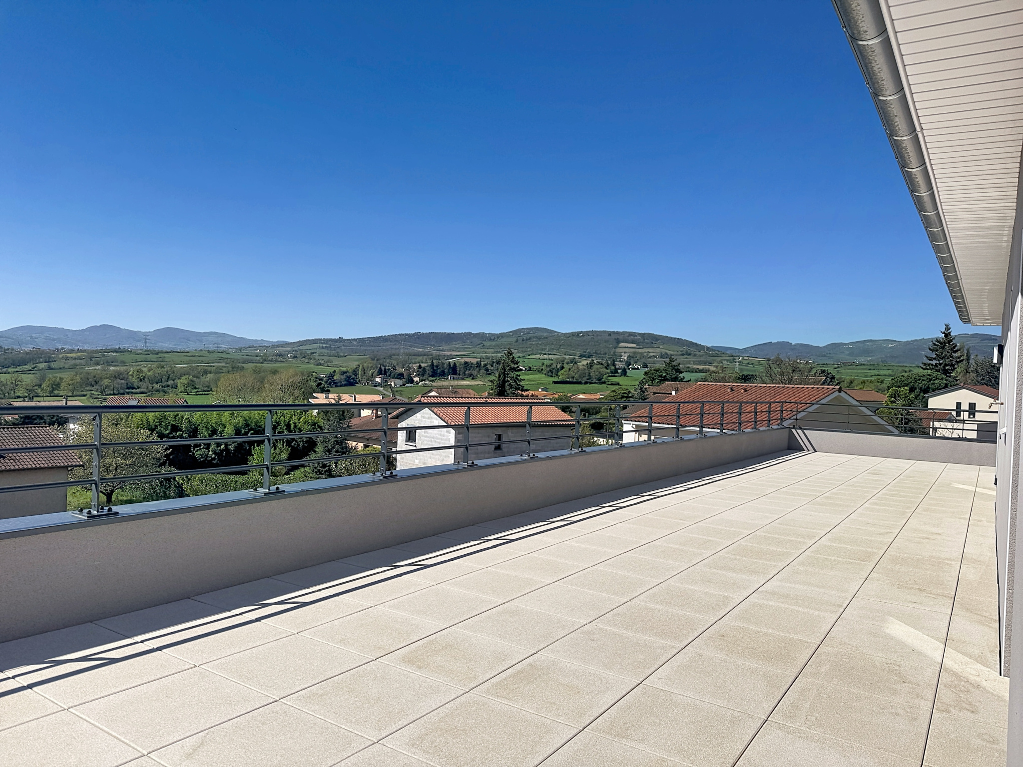 - le dernier étage avec terrasse de 74m² et vue dégagée sur les monts du lyonnais
