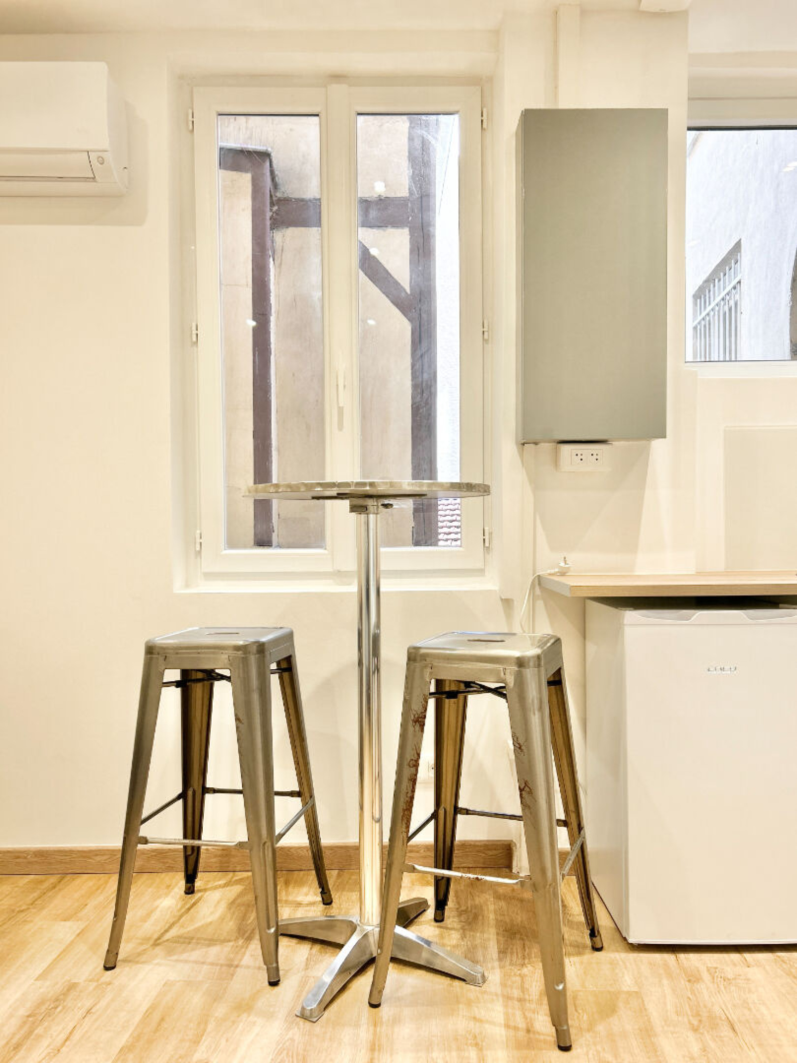 - Le mobilier 'stylé' (chaises et tabourets Tolix, bureau 'indus' , table bar, canapé/lit avec table de salon),